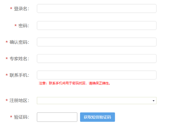 4.在專家注冊頁面,據(jù)實(shí)填寫完善相關(guān)信息并獲取驗(yàn)證碼,點(diǎn)擊