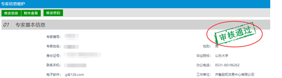 7.信息審核通過之后,頁面會有驗(yàn)證通過字樣出現(xiàn)。到此專家注冊流程結(jié)束。